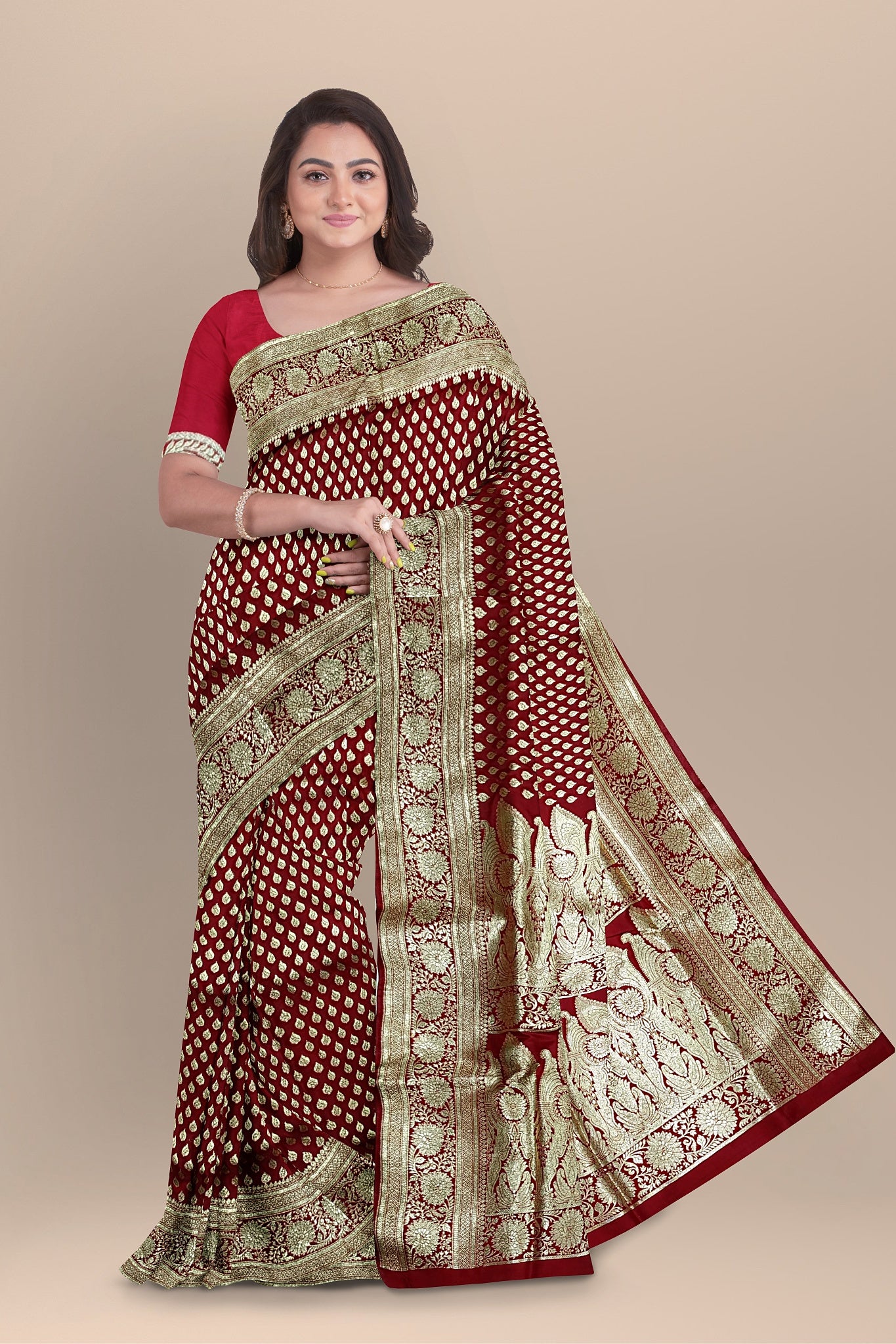 Classic Red Benarasi Saree with Golden Buta and Matching Blouse.DN NO-2002