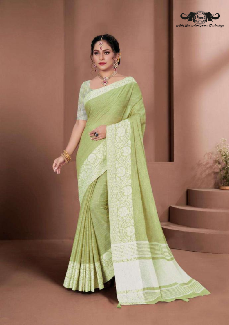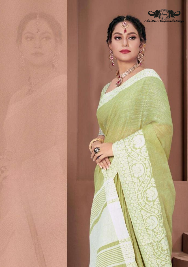 Traditional Bengal Cotton Silk Soft Jamdani Saree with parrot green colour combination ,Handwoven in the Rich Heritage of Bengal Minakari Dhakai | Item Length: 5.5 Metres Width: 1.2 Meters | Without Blouse Piece.DN NO-1012