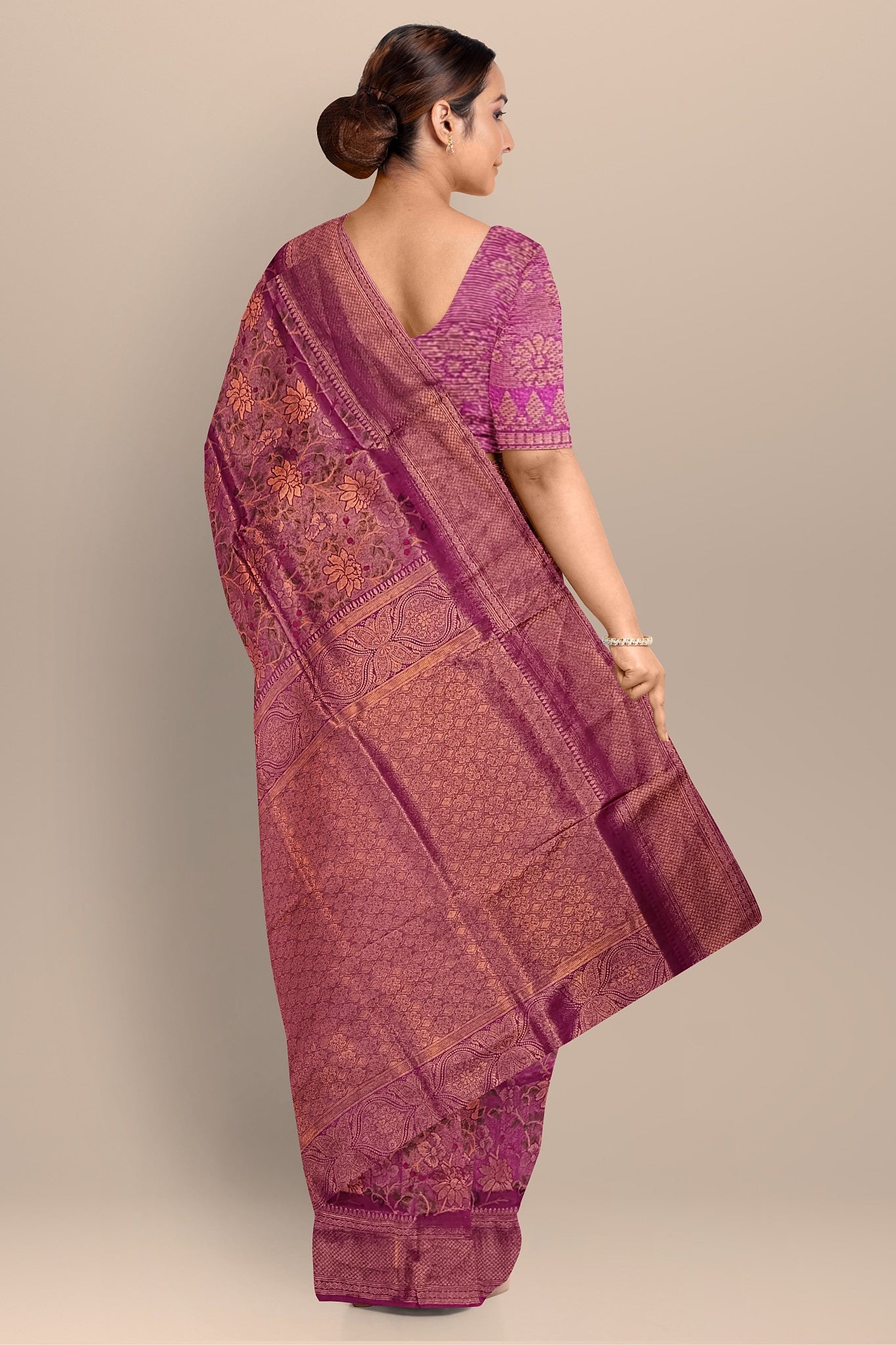 Elegant Purple Silk Saree with Buta, Floral & Kalka Work
