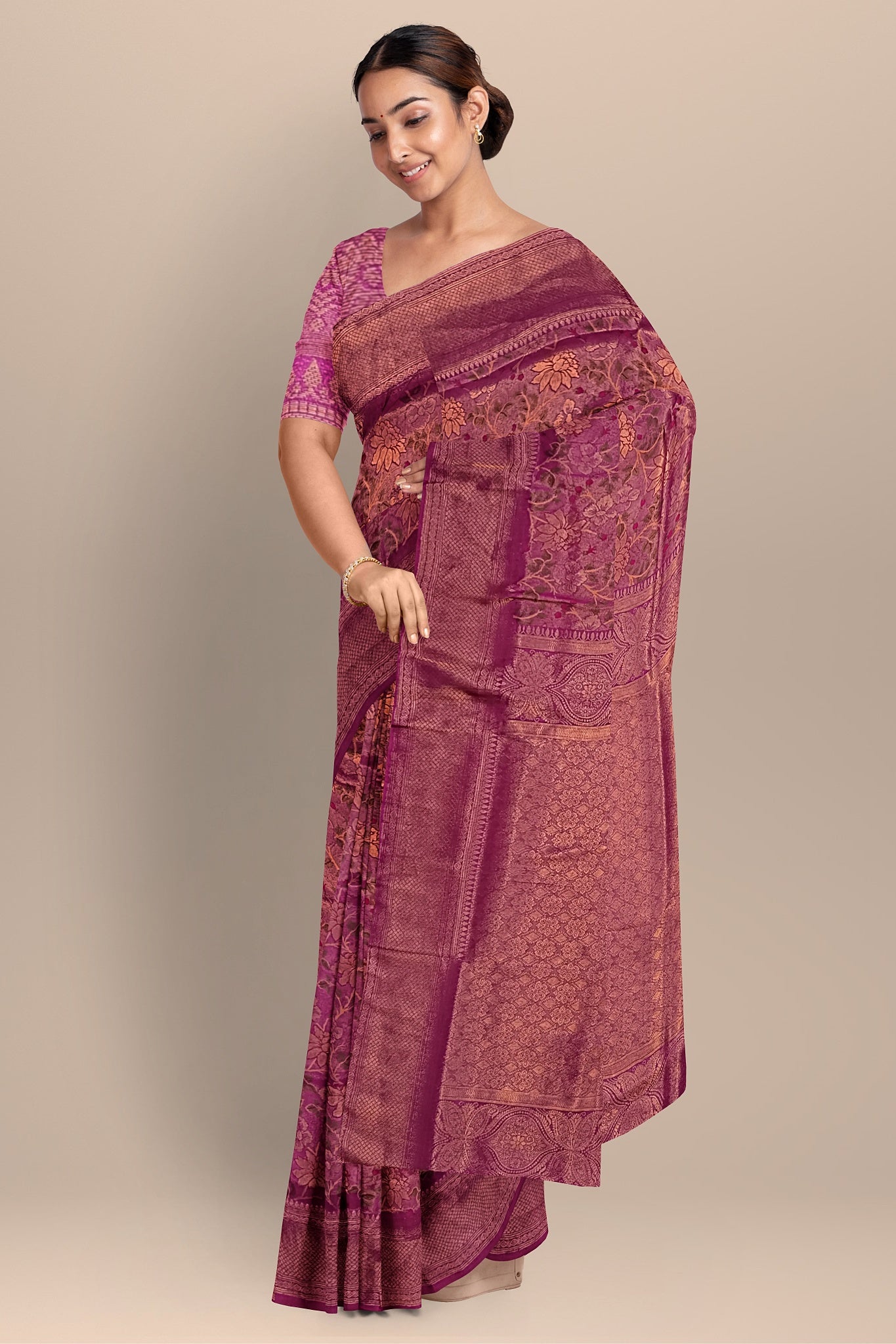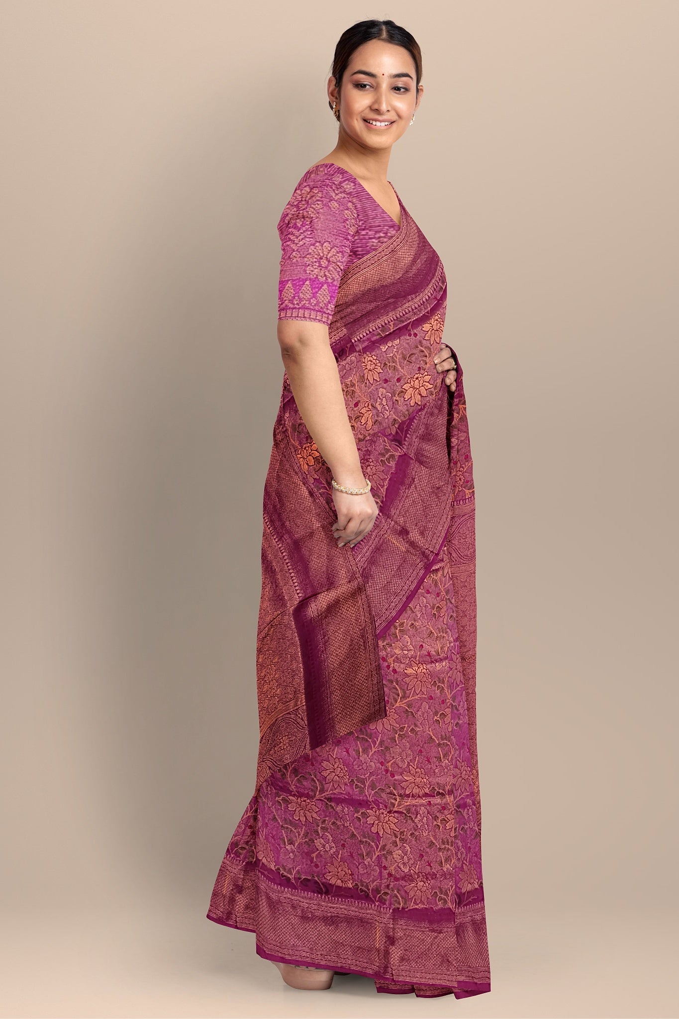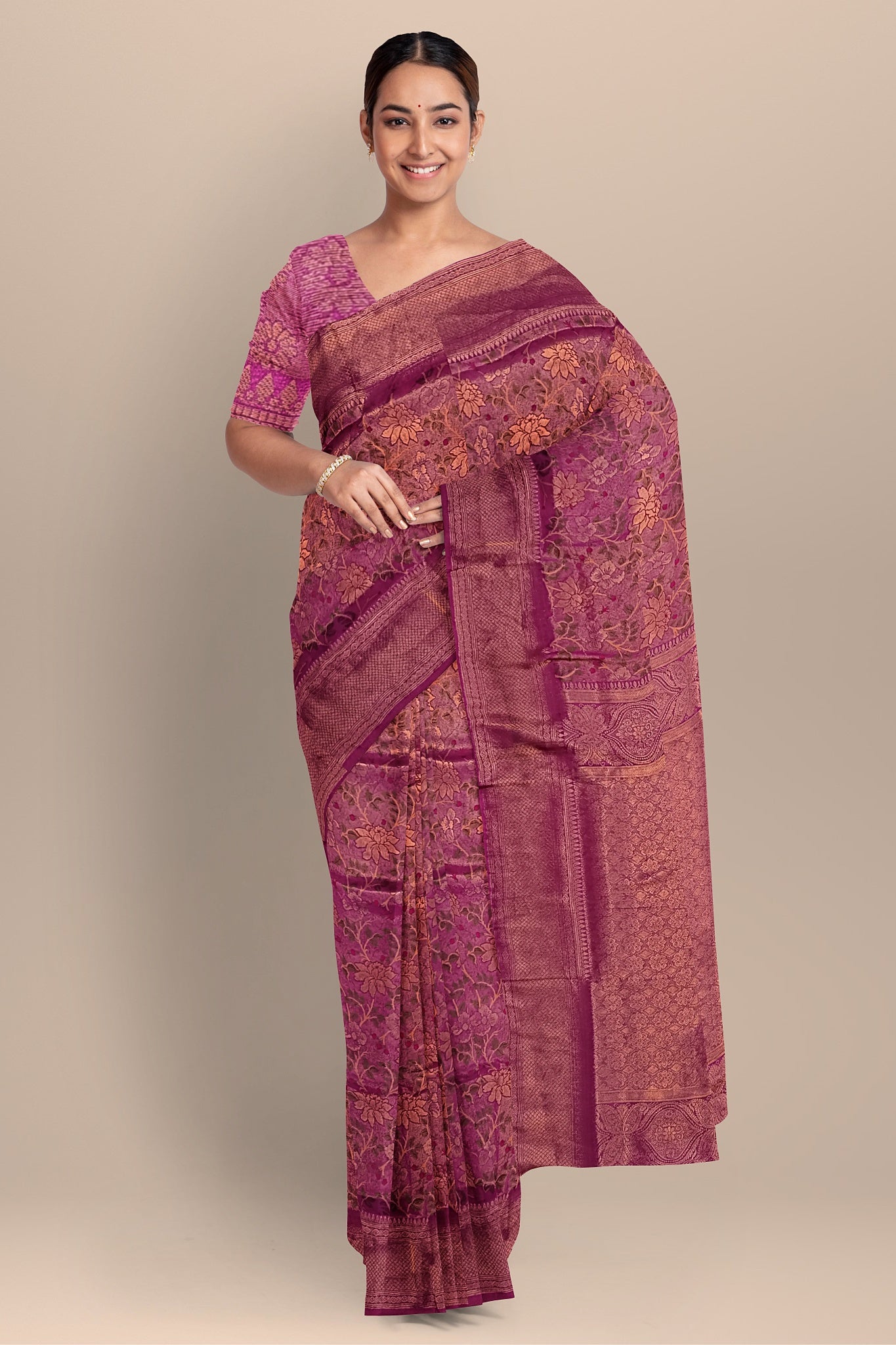 Rani Floral Silk Saree with Kalka Pallu and Butti Blouse