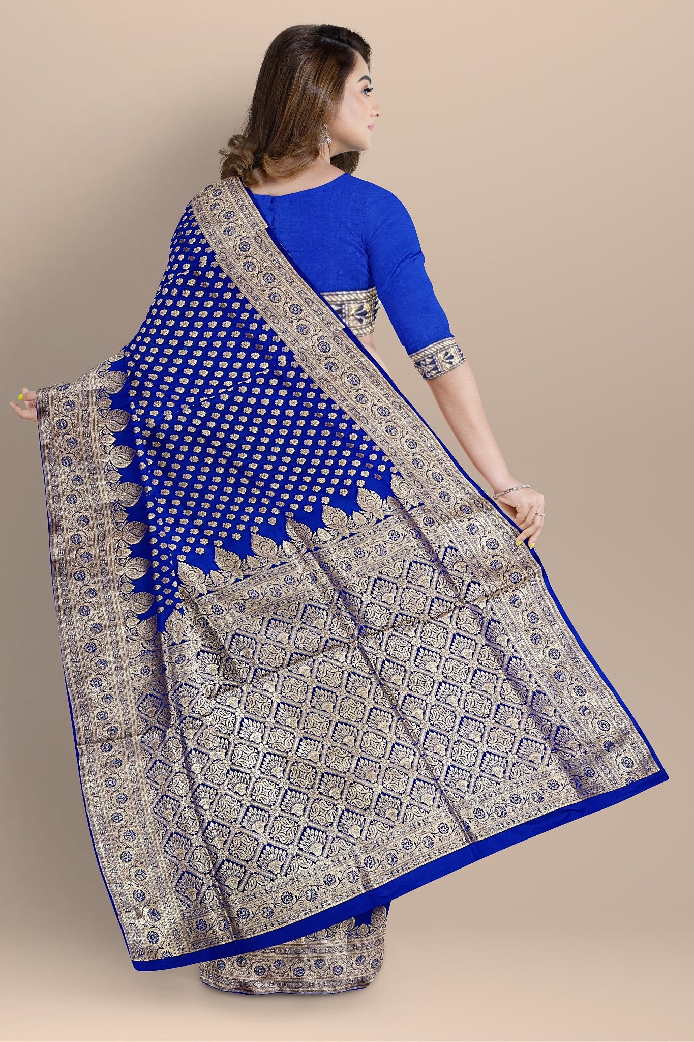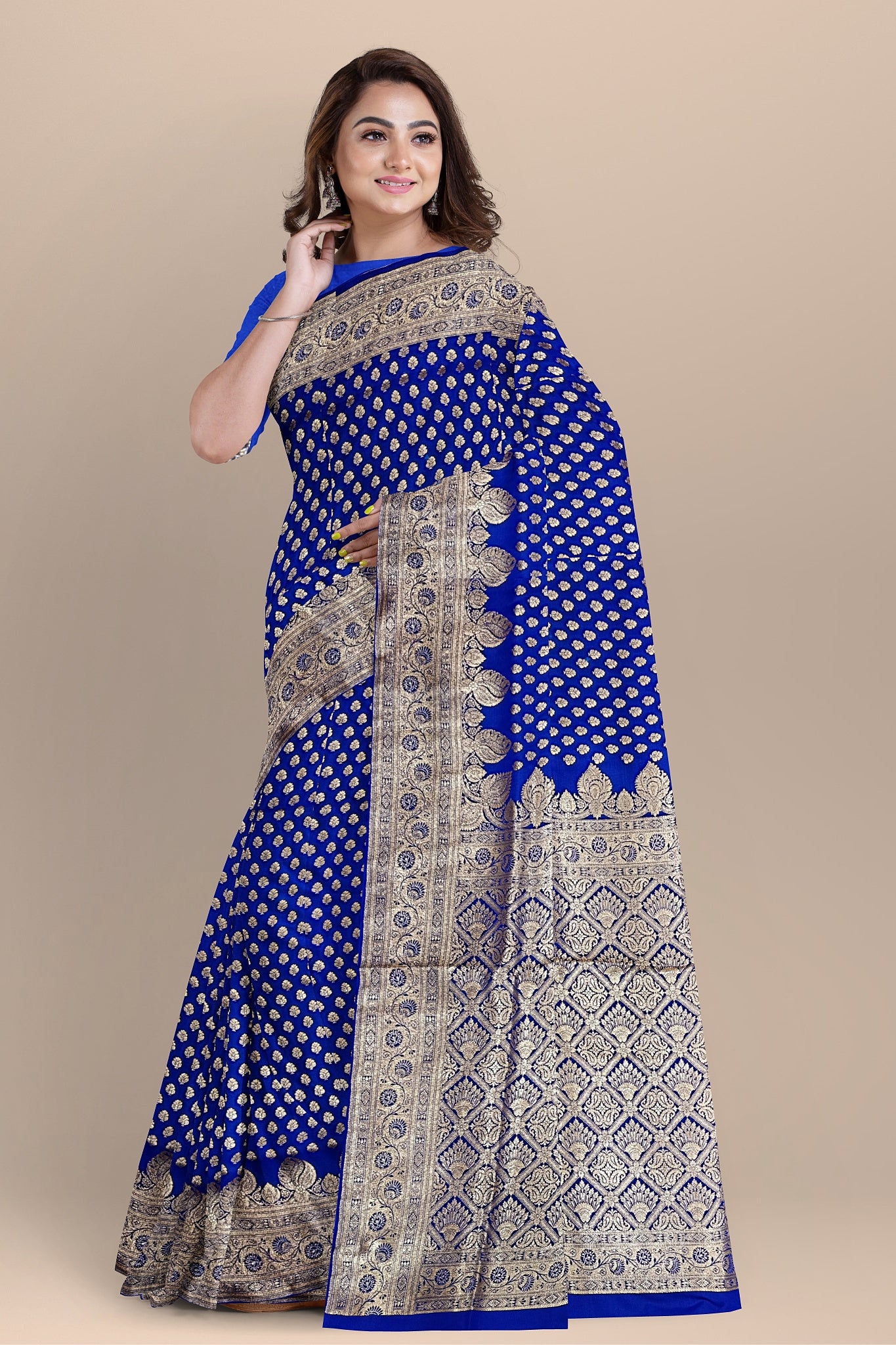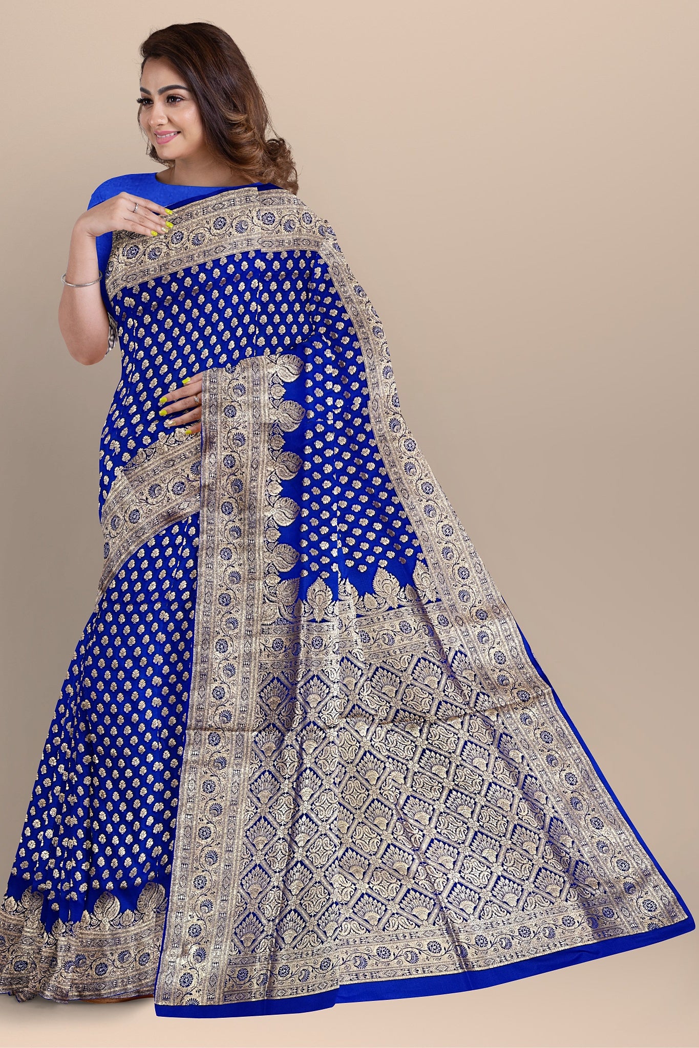 Regal Royal Blue Benarasi Saree with Intricate Buta and Kalka Work