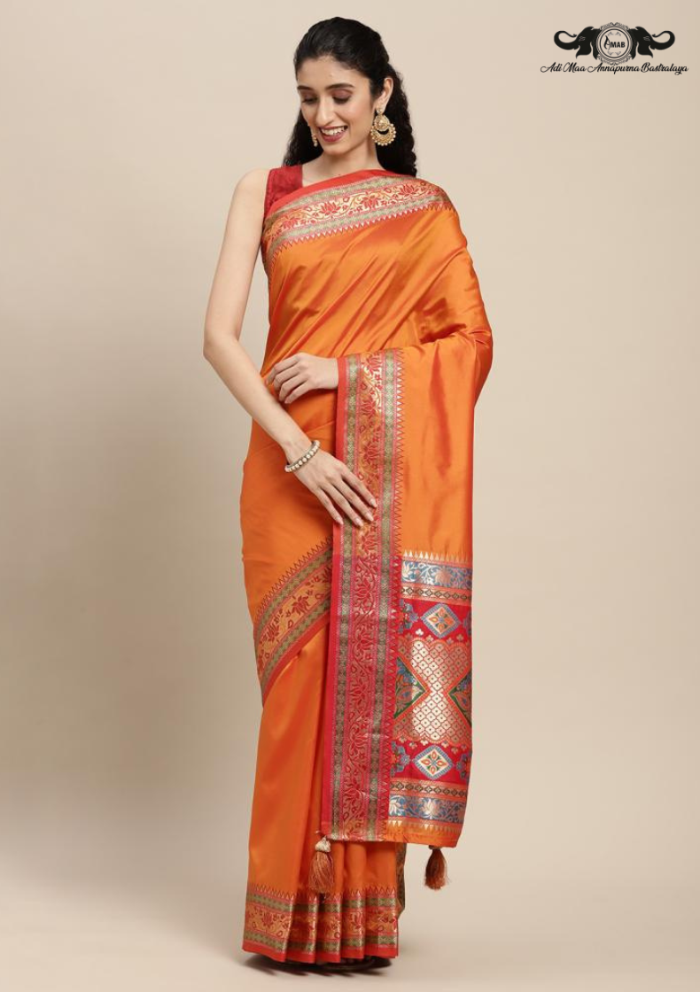 Traditional Bengal Cotton Silk Soft Jamdani Saree with orang colour floral combination ,Handwoven in the Rich Heritage of Bengal Minakari Dhakai | Item Length: 5.5 Metres Width: 1.2 Meters | Without Blouse Piece.DN NO-1031
